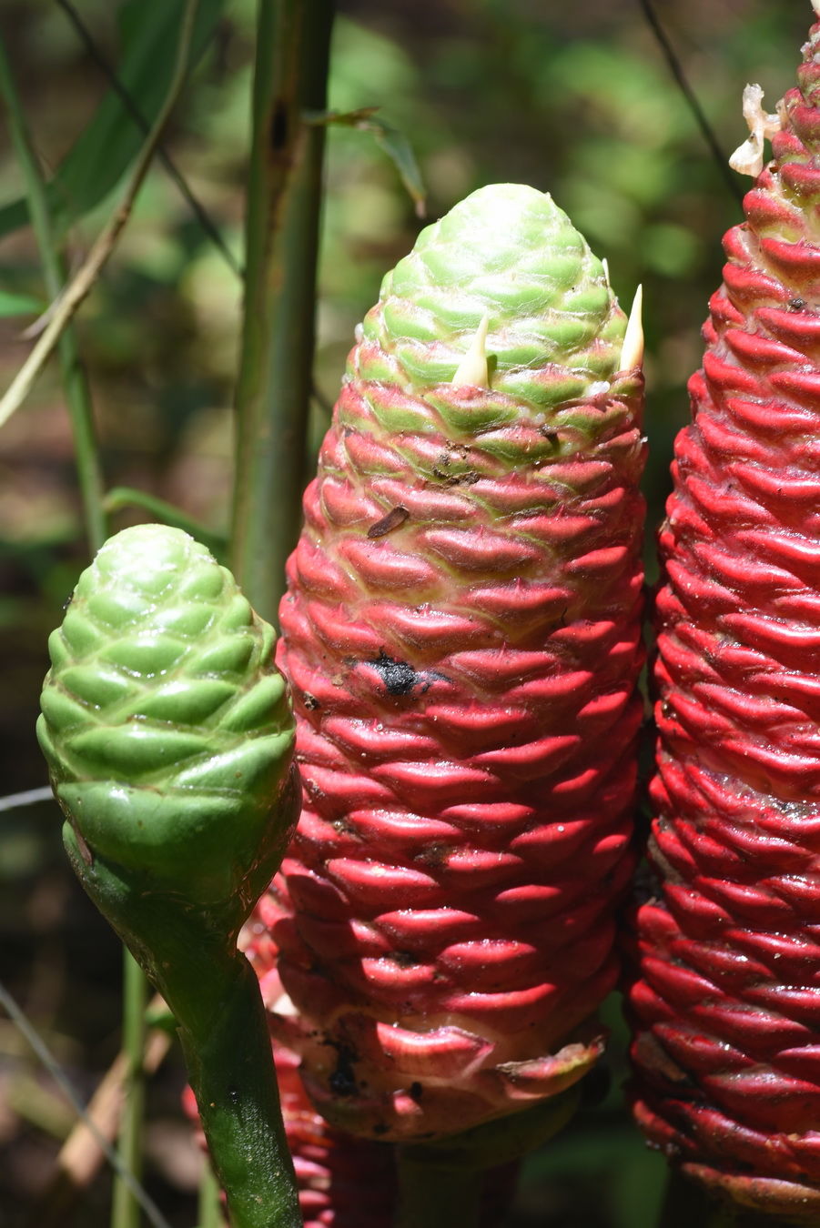 • Cụm hoa: dạng trứng hoặc hình trụ, mọc từ thân rễ trên cán hoa dài 20–30cm. Lá bắc màu xanh lục nhạt, đôi khi ánh hồng. Tràng hoa màu trắng.